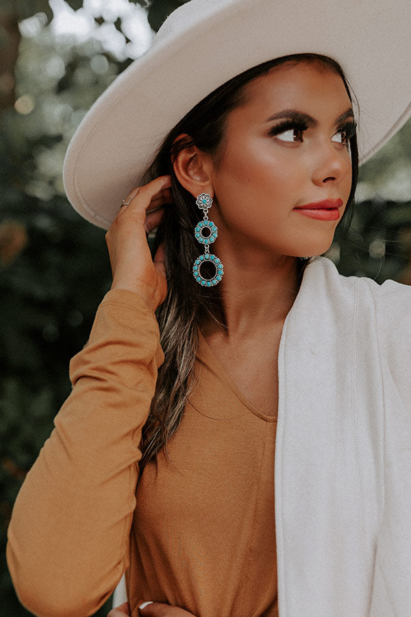 People are guaranteed to compliment you when you accessorize with our stunning 'Secret Soiree Earrings' featuring vintage silver flower studs with a tiny turquoise center and two dangling vintage silver hoops with turquoise faux stone detailing!