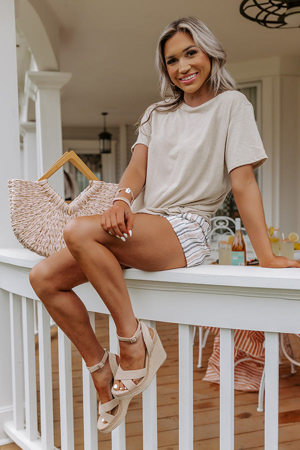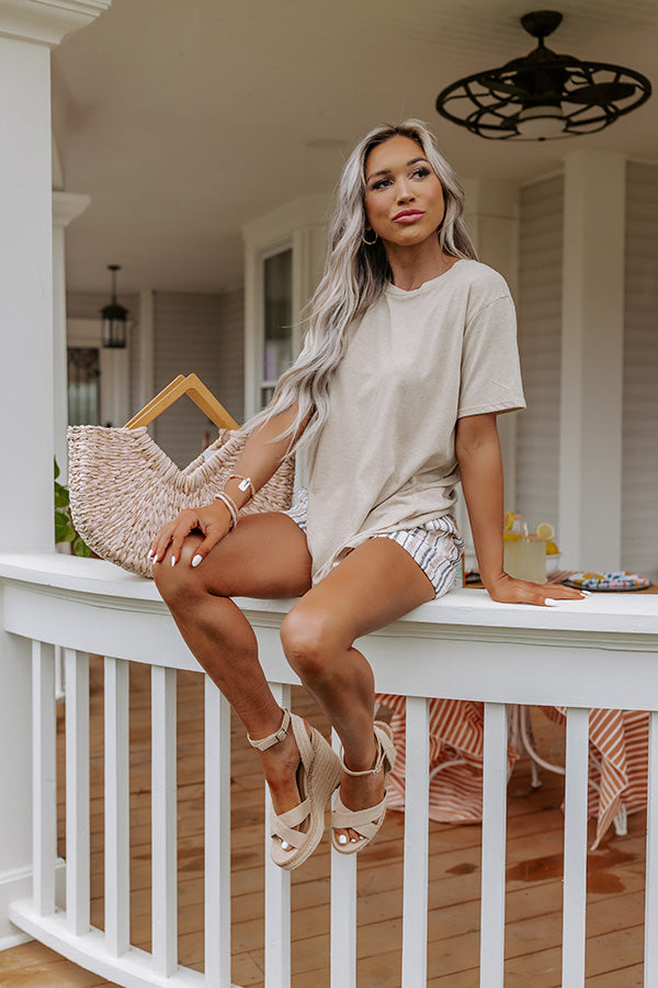 Keep you look simple but stylish in our basic beige colored 'See You Around Shift Tee' featuring soft lightweight material, a rounded neckline, short sleeves, and a relaxed silhouette that falls into a straight hemline! on products