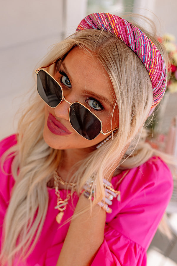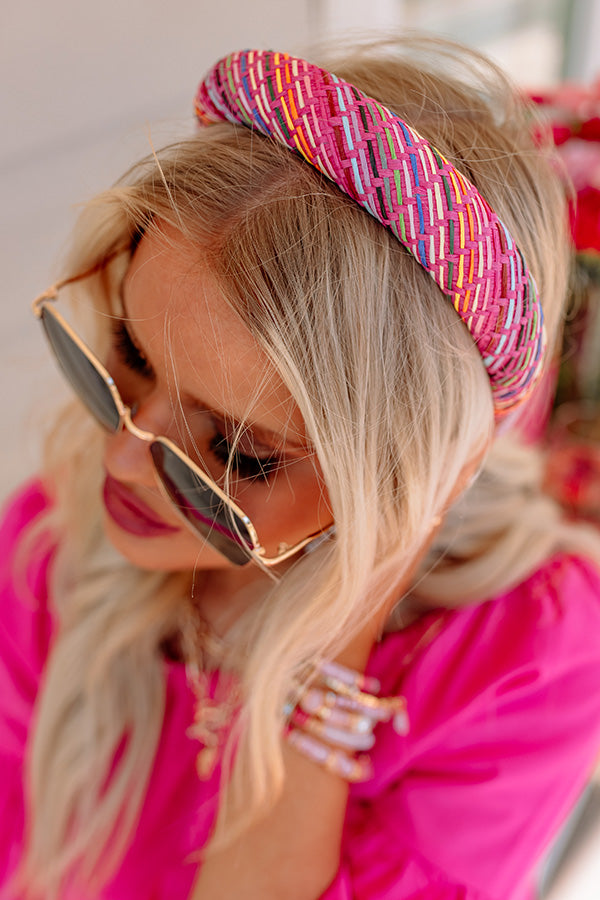 Subtly add color to your look with our darling pink 'See You Around' headband featuring lightweight woven material and rainbow diagonal stripes!