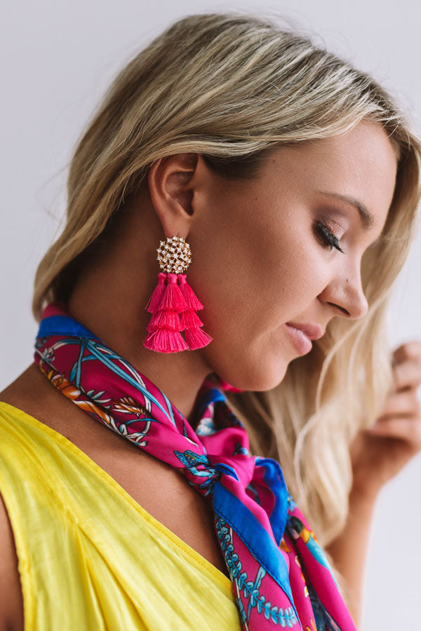 Seeing Sparkles Tassel Earrings In Hot Pink