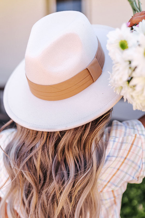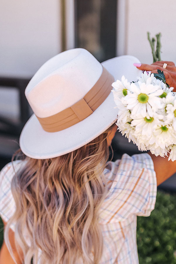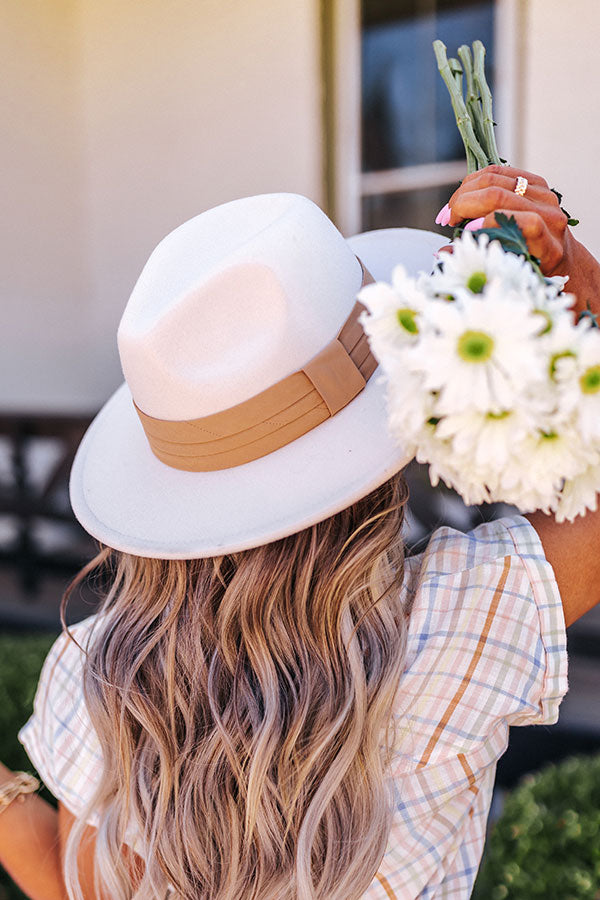 A spring essential, our adorable ivory colored 'Send Me A Letter' fedora features lightweight felt material, a 3.3-inch brim, and a thick tan accent band!