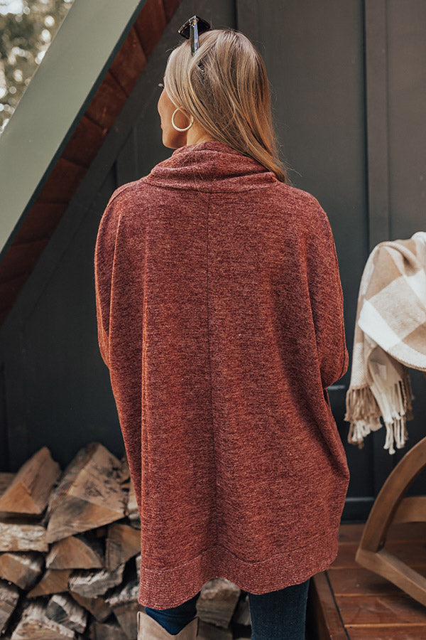 Keep you winter style casual but cute with our wine colored Senorita Snuggles Shift Sweater, featuring soft lightweight material, a turtle neckline, long loose sleeves with fitted forearm cuffs, and an ultra draped silhouette that falls into a straight high/low tunic-length hemline with accent side slits!