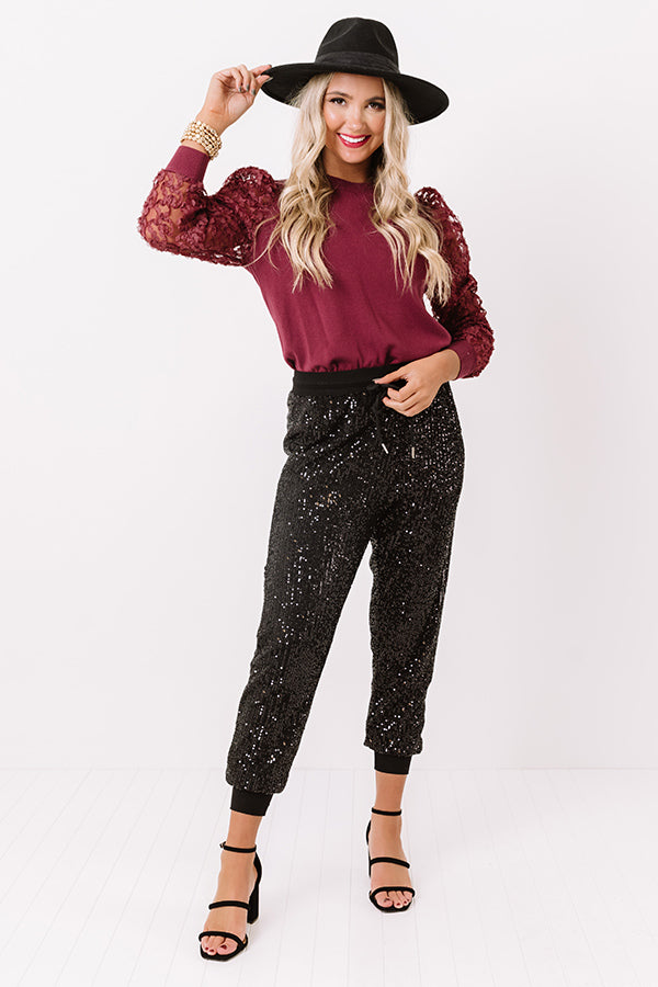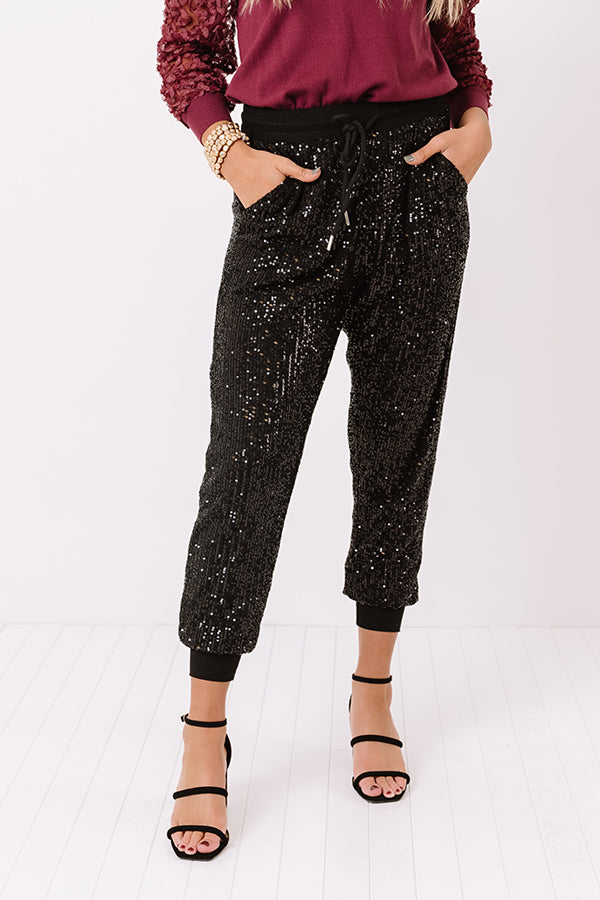 Sequin Smiles Joggers In Black