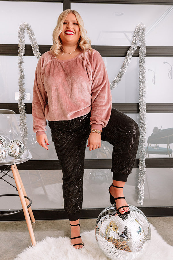 Sequin Smiles Joggers In Black Curves