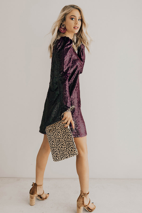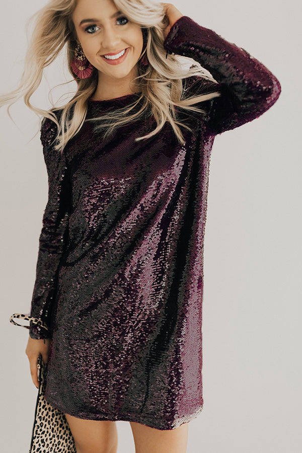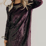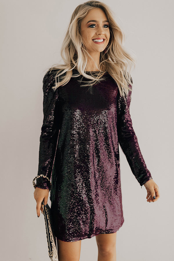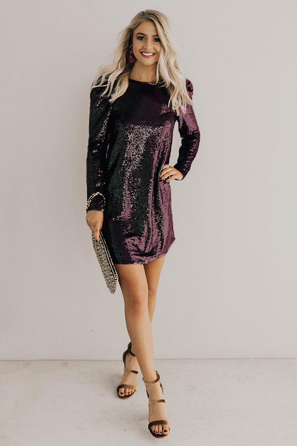 Hey showstopper! You'll always turn heads in this sequined gem and never want the party to end. This dress features detailed hemming on the shoulder, zippered back and cuffs, and a sexy open back!