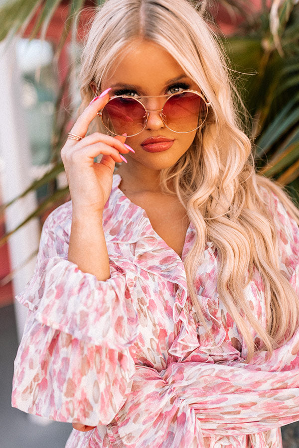 Stay shady in our trendy 'Serious About Sunshine Sunnies' featuring groovy circle frames with blush tinted lenses!