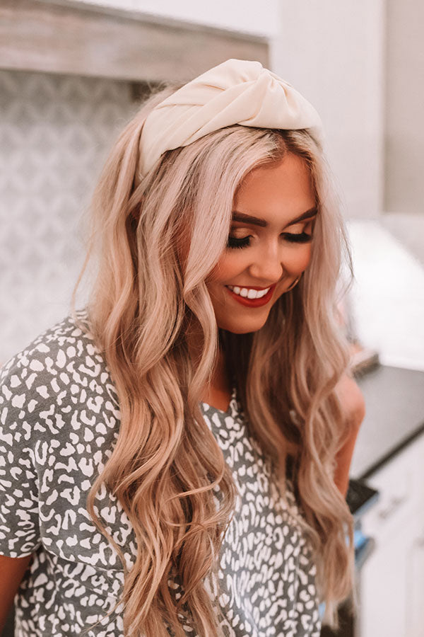 You will be "serving up chic" when you accessorize with this adorable cream colored headband featuring sleek material with a twisted top detail and an open structure silhouette!