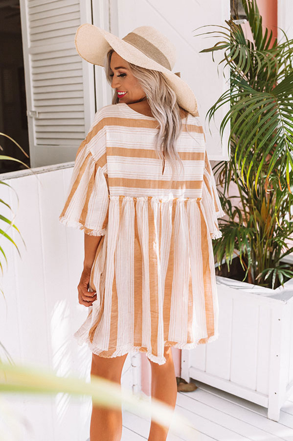 Set For Shore Stripe Babydoll Dress in Golden Honey