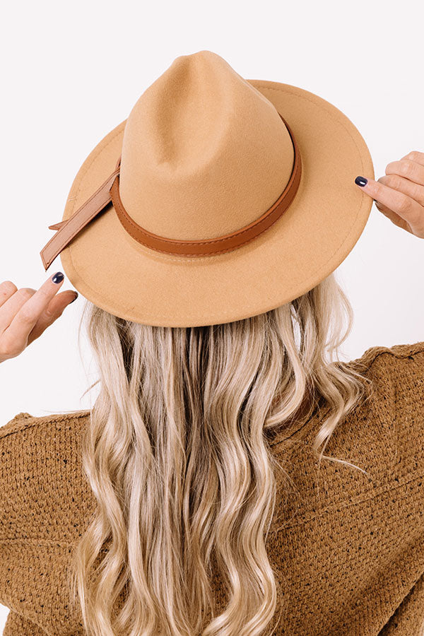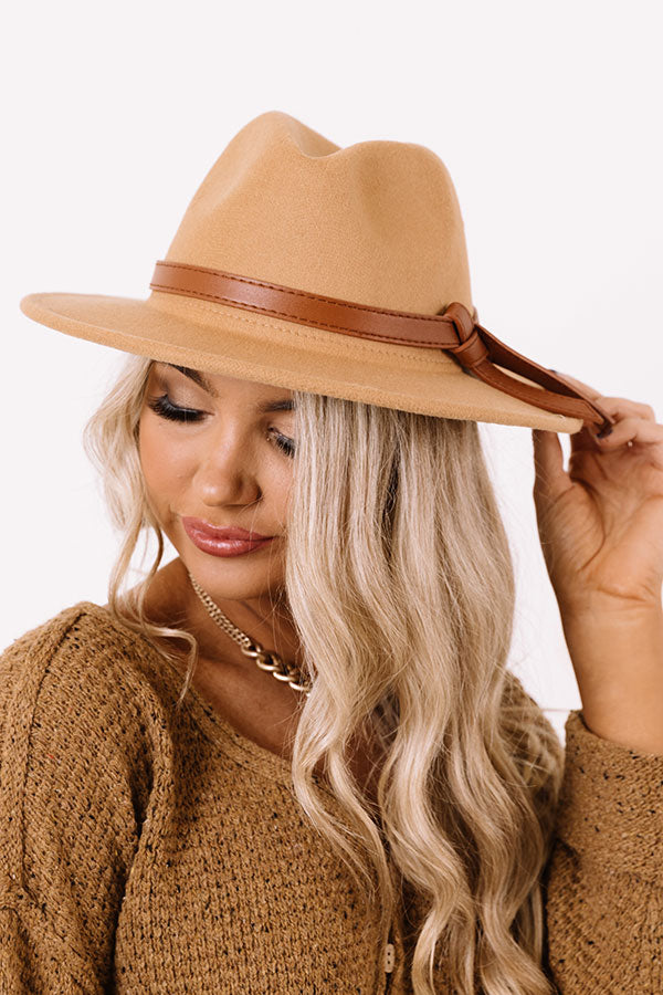 Complete your look in style with our camel colored 'Shades Of Fall Fedora' featuring lightweight material, a 2.5-inch brim, and a brown knotted accent band!