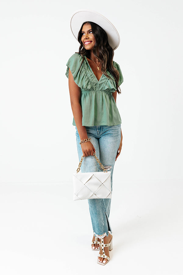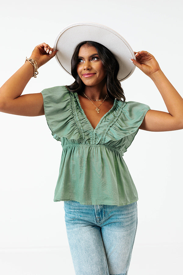 Get dressed in effortless style in our darling pear colored 'Share The Love' top featuring lightweight material, a v-cut neckline, ruffled cap sleeves that continue down the bodice, an open upper back with a tie closure, and a flattering babydoll silhouette that falls into a straight hemline!