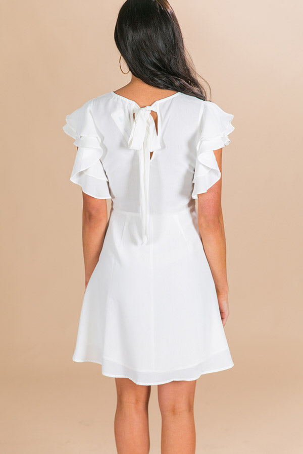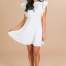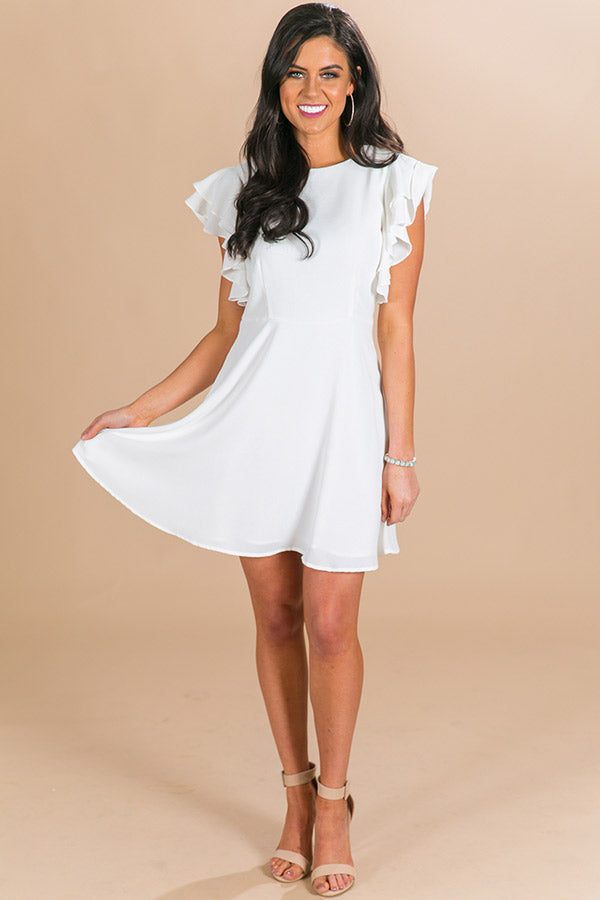 You'll look like you arrived straight from cloud nine in this sweet ruffle dress! This flattering feminine dress has a modest neckline, sleeveless fitted bodice with flirty flounce sleeves & a stunning skater skirt. Style with a dainty heel for the perfect church, Easter Sunday or bridal brunch look!