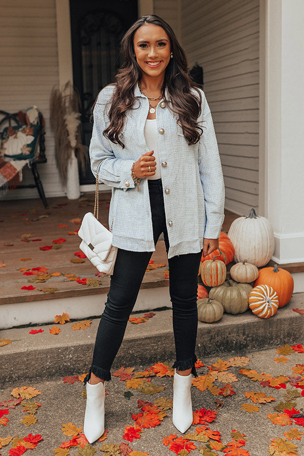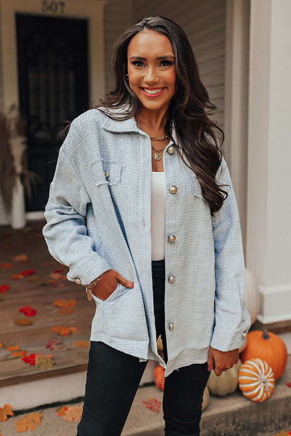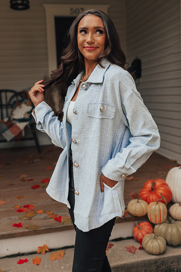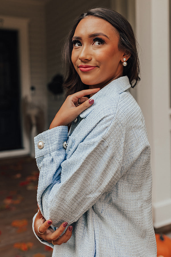 Shift Focus Tweed Lightweight Jacket in Sky Blue