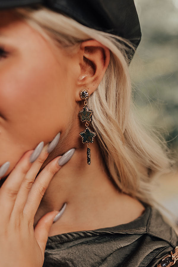 Shine bright by accessorizing with these stunning earrings featuring three dangling and shimmering black stars!