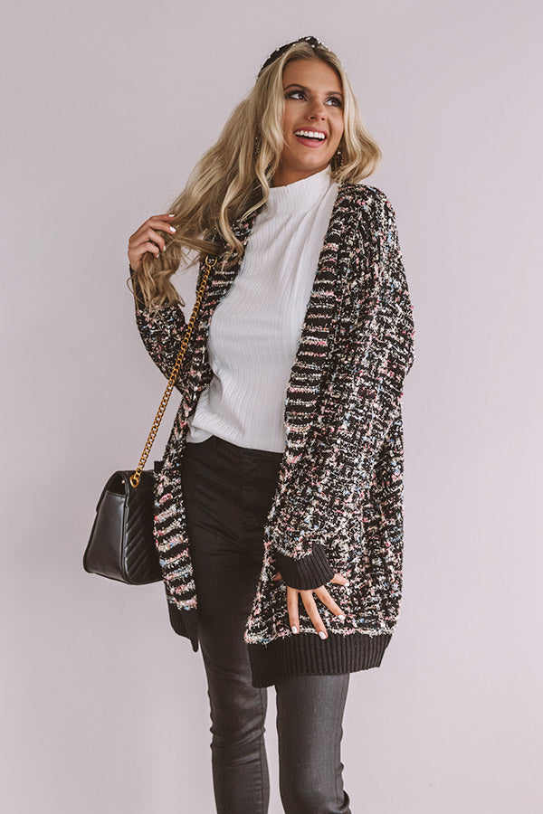Shining Statement Knit Cardigan in Black