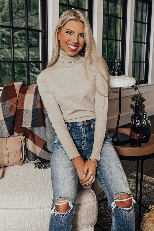 Take to the streets in style in our adorable light grey 'Shopping In Boston' top featuring lightweight material, a rolled turtle neckline long sleeves, and a flattering figure hugging silhouette that ends in a straight hemline! Measurements