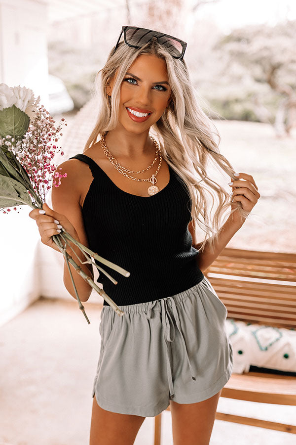 You are "shore" to love this versatile black top featuring lightweight and comfortable material, a scooped v-cut neckline and upper back, 1-inch sleeveless shoulder straps, and a flattering figure hugging silhouette that ends in a straight cropped hemline!