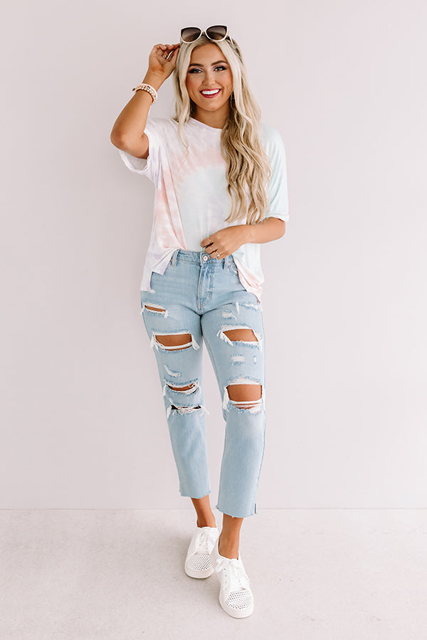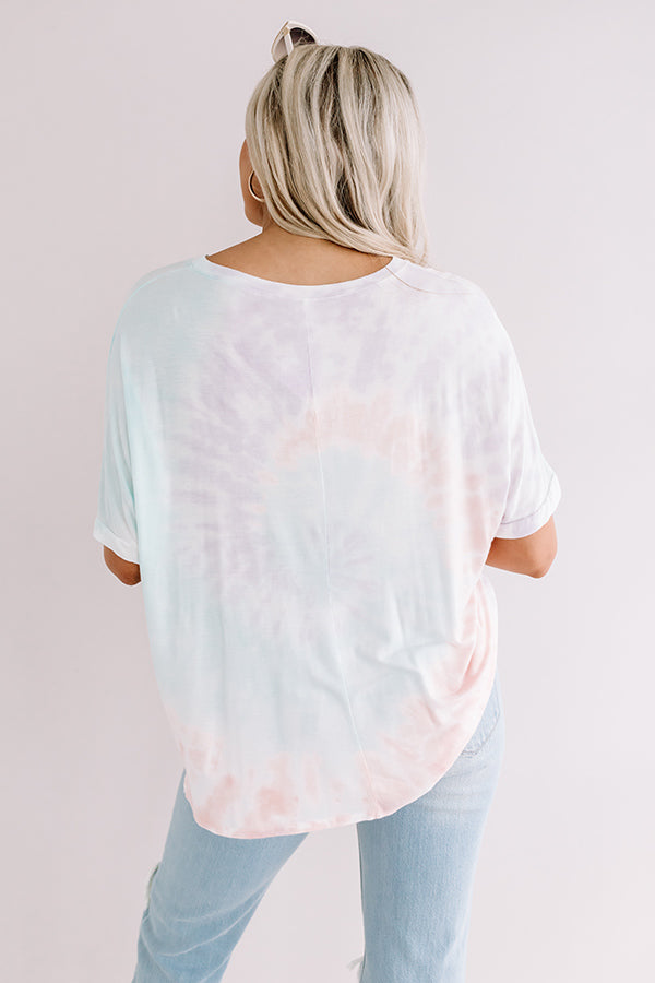 You will without a doubt look "divine" in this adorable tee featuring soft lightweight material, pastel lavender, blue, and light rust hued swirl tie dye, a high rounded neckline, short loose sleeves, and a relaxed silhouette that falls into a straight hemline with accent side notches! We have styled this casual cutie with some distressed ankle skinnies, trendy white sneakers, and matching sunnies, but you can also wear it with our "Sleeping In Tie Dye Joggers in Ivory" and a matching scrunchie for the ultimate comfy two-piece lounge look! Measurements
