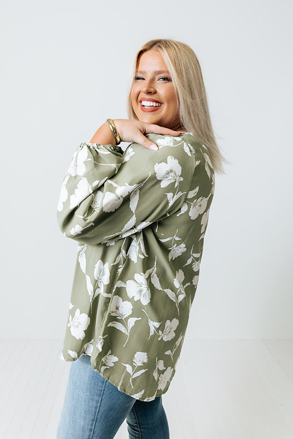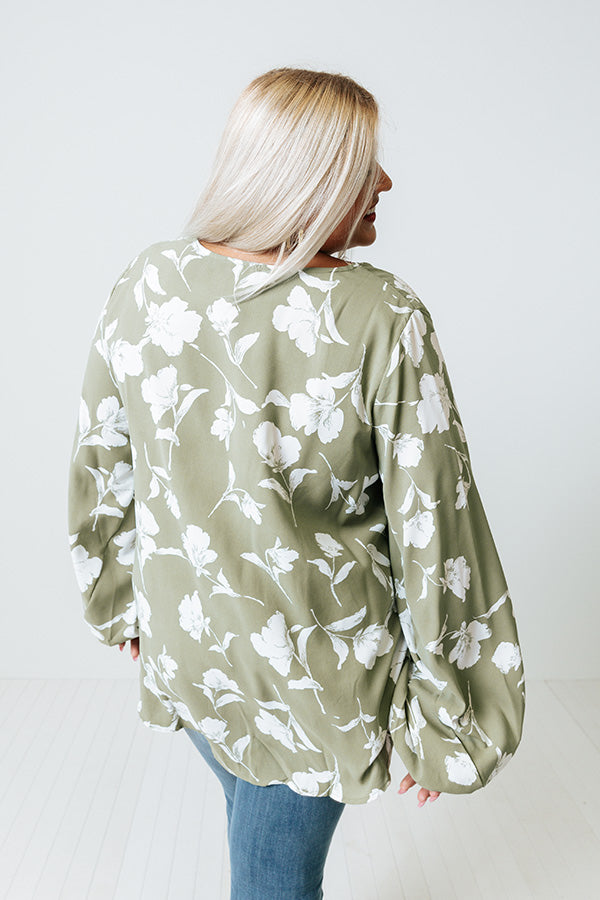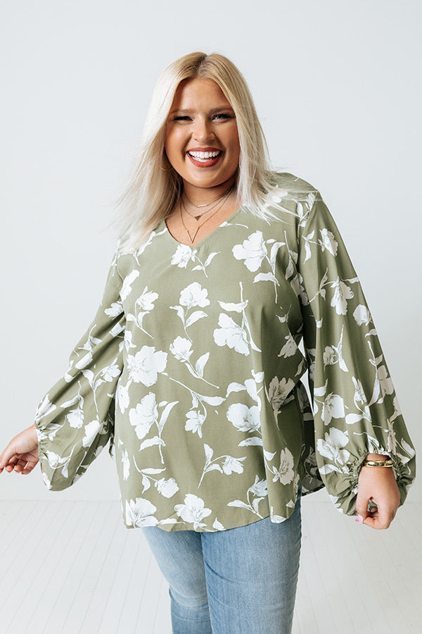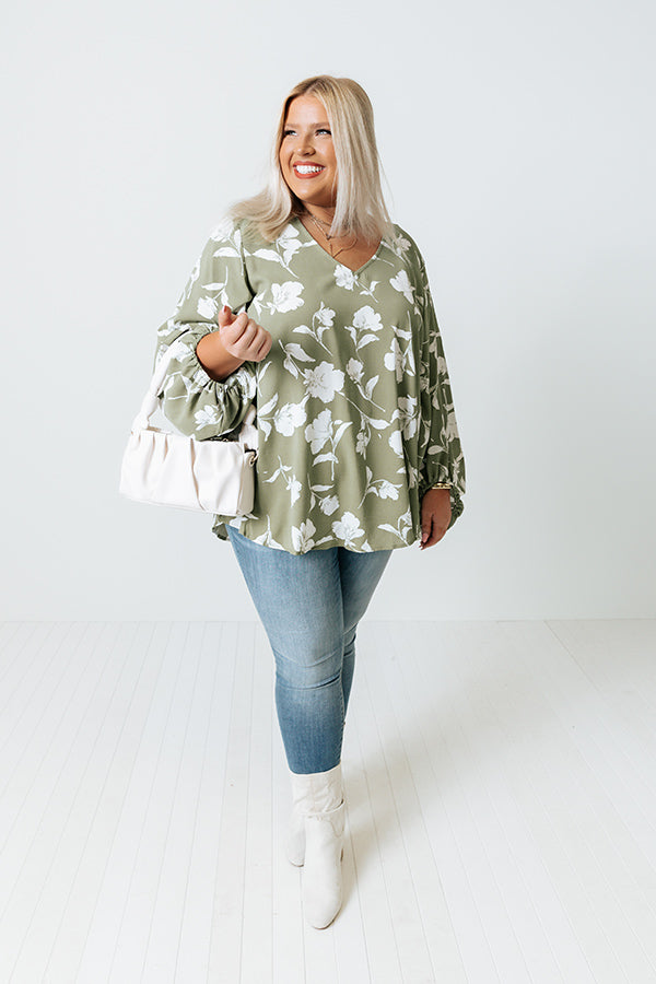 You are sure to love this darling plus size light sage colored shift top featuring lightweight flowy material patterned with a large white floral print, a scooped v-cut neckline, oversized 3/4-length bubble sleeves, and a relaxed silhouette that falls into a straight hemline! Measurements