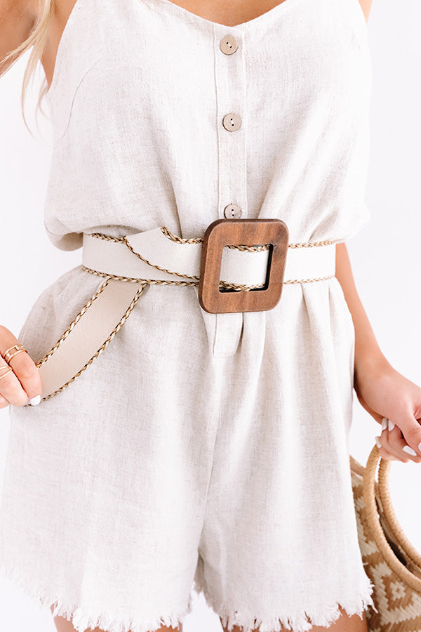 "Show out" and show up in this amazing belt featuring an ivory colored strap with braided trim and a large square wooden buckle!