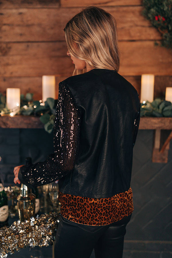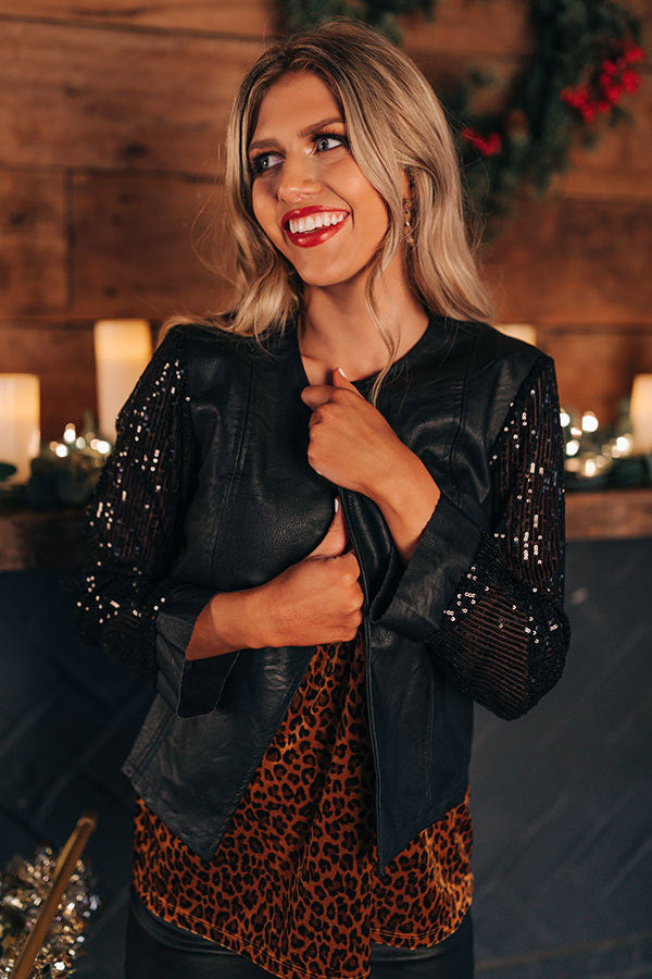 We have no doubt you will want to show off this chic black blazer featuring sleek lightweight faux leather material, long semi-sheer sequin covered sleeves with fitted cuffs and structured shoulders, and a relaxed open front silhouette that falls into a straight cropped hemline! You can style this versatile piece with just about anything from a basic tank to a sweater, jeans to skirts or dresses, booties to wedges or sandals, clutches to totes, and hats to earrings! Measurements