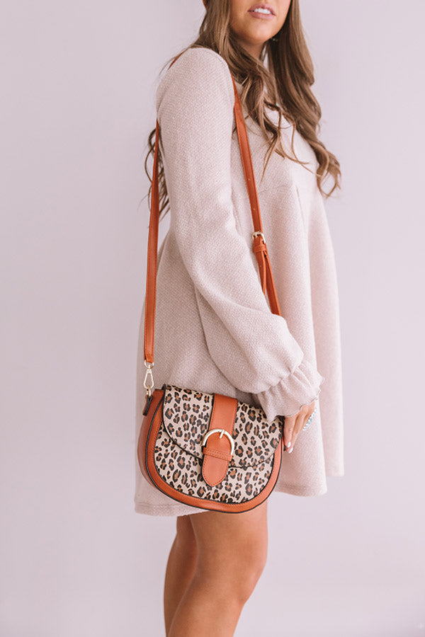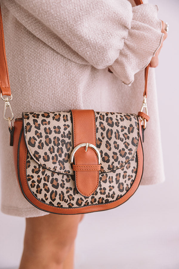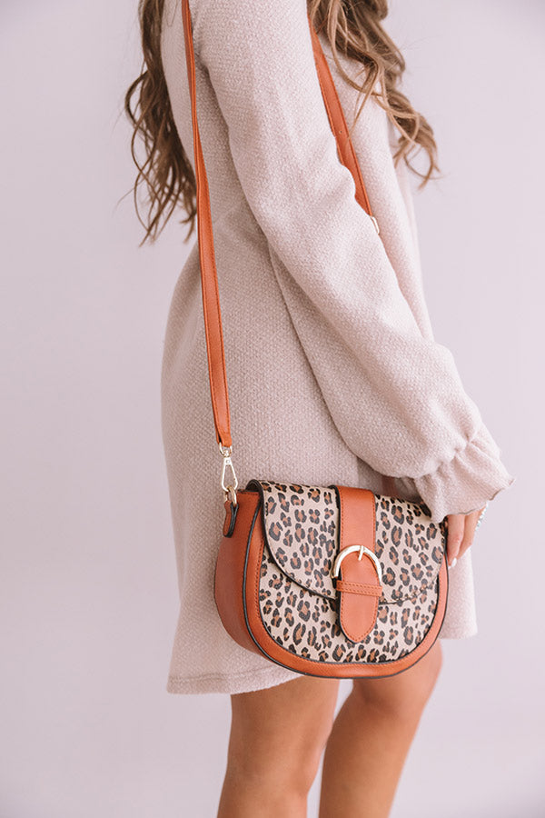 There is no better accessory to show off all the time than this gorgeous pumpkin colored crossbody featuring sleek faux leather material patterned with a black and brown leopard print, a flap closure with a snap button, a removable and adjustable shoulder strap, and a rounded fully lined spacious pouch with additional inside pockets!