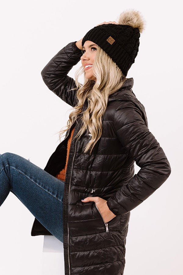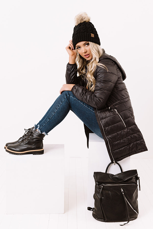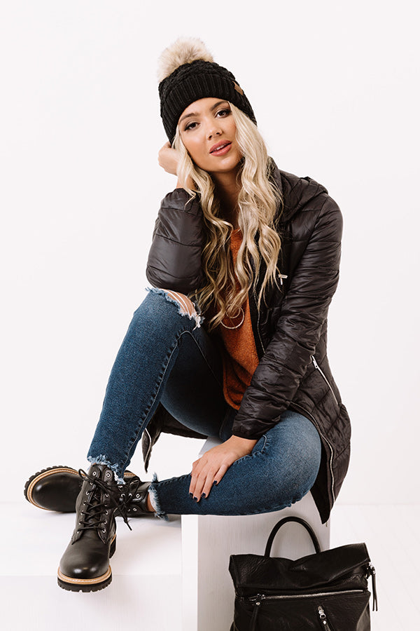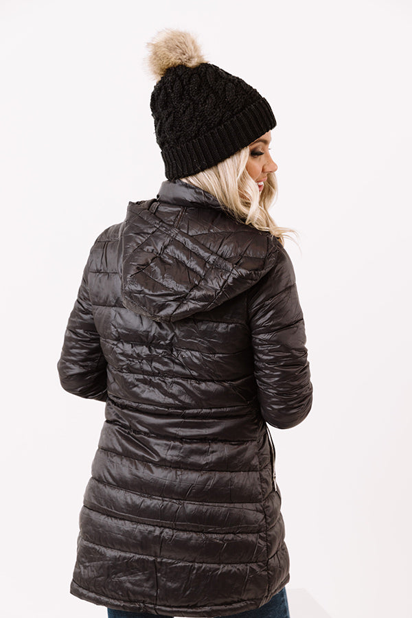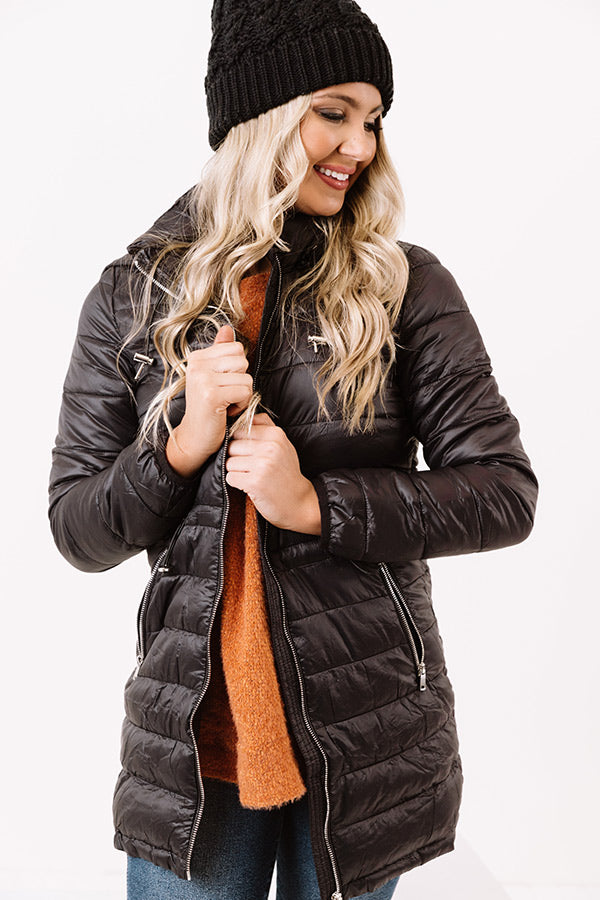 Turn heads in our timeless black 'Shuttle To The City Jacket' featuring lightweight horizontally quilted material, long loose sleeves with elastic band cuffs, a zip front with a collared neckline and a removable hooded back, low accent side pockets with zip closures, a cinched waistline, and a flattering silhouette that falls into a straight upper-thigh length hemline! Measurements