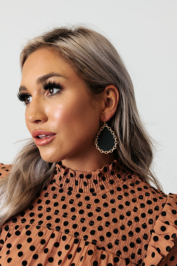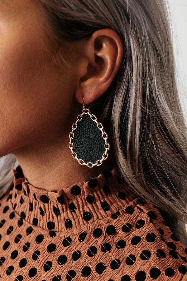 Accessorize with ease in our pretty 'Sierra Nevada Earrings' with large black teardrops in a gold chain link setting!