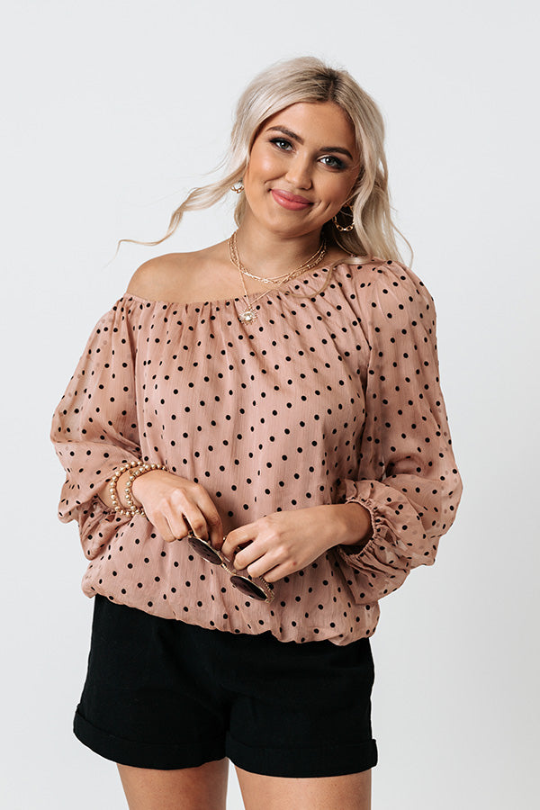 Slay all day in our chic blush colored 'Sign Of The Times Shift Top' featuring lightweight flowy material patterned with black polka dots, a wide scooped neckline, long bubble sleeves, and a slouched silhouette that ends in a straight elastic hemline!