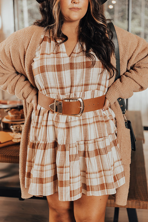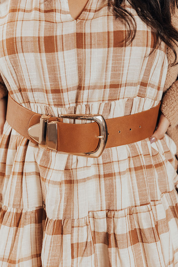 We have no doubt you will love this flirty statement belt featuring a wide faux leather brown strap with beautiful gold hardware! Belt Length- 32.5 In.-36.5 In.