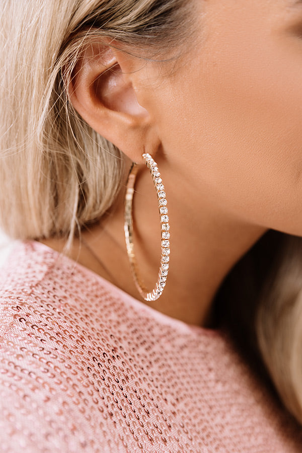 We have no doubt you will be simply crushing on these darling earrings featuring large gold hoops covered in shimmering faux diamonds!