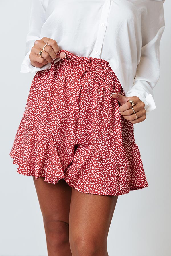 We have no doubt you will simply look gorgeous when you complete your look with these adorable red short featuring lightweight flowy material patterned with a cute leopard print, a small leopard print, an elastic waistline, and a flirty shift silhouette that falls into ruffled upper-thigh length hemlines!