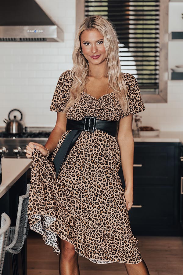 We have no doubt you will look simply radiant in this gorgeous midi dress featuring lightweight flowy material patterned with a bold black and brown leopard print, a flirty neckline, short bubble sleeves, and a relaxed silhouette that falls into an uneven mid-calf length hemline!