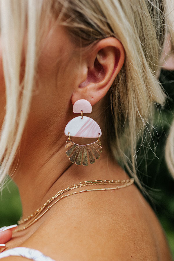 Add a peaceful finish to any look with our adorable 'Simply Serene Earrings' featuring a pink clay half circle stud and dangling pendant with a gold fan! Due to manufacturing there may be some variations in color.