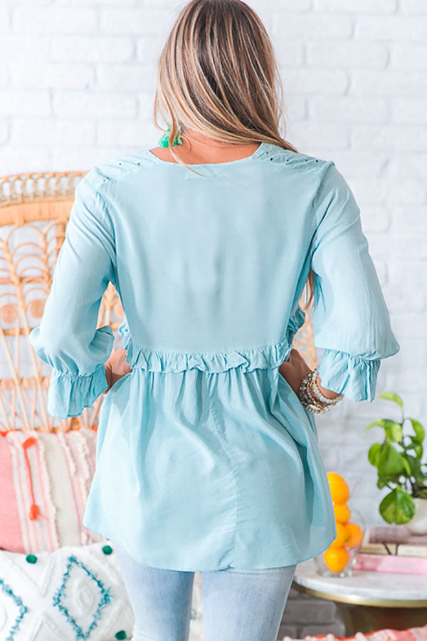 Sit back, and take it breezy in the "Simply Sweet Babydoll Top!" This babydoll beauty has an eyelet pierced empire bodice with ruffled trim, quarter-length sleeves with an elasticized flounced cuff & an ultra breezy babydoll silhouette. Style with your favorite denim & a chic sandal for a stylishly simple look that everyone is sure to adore!