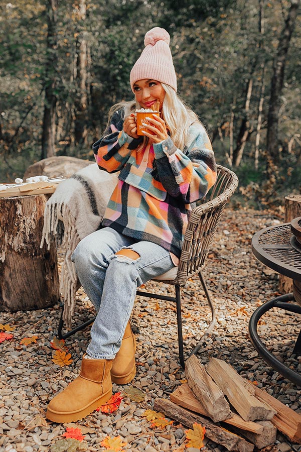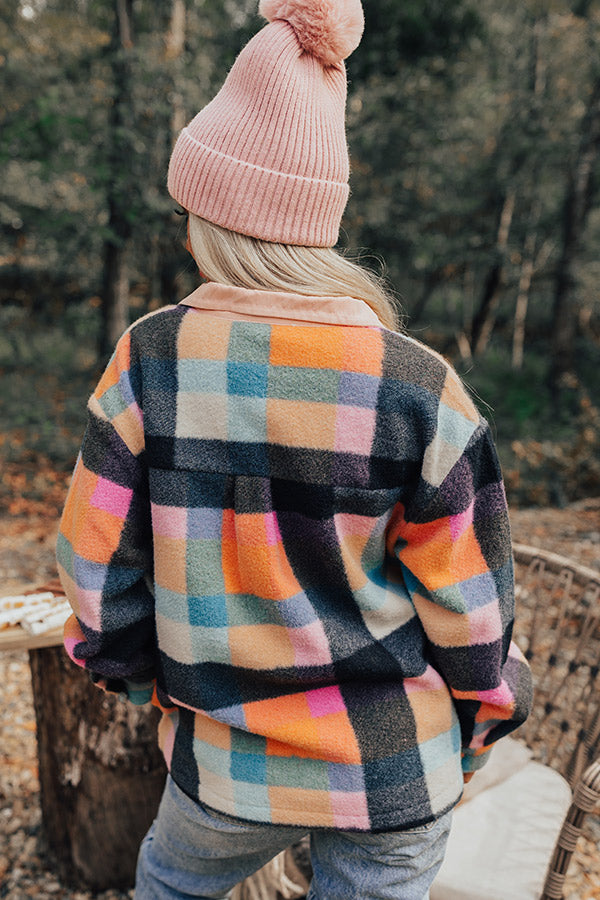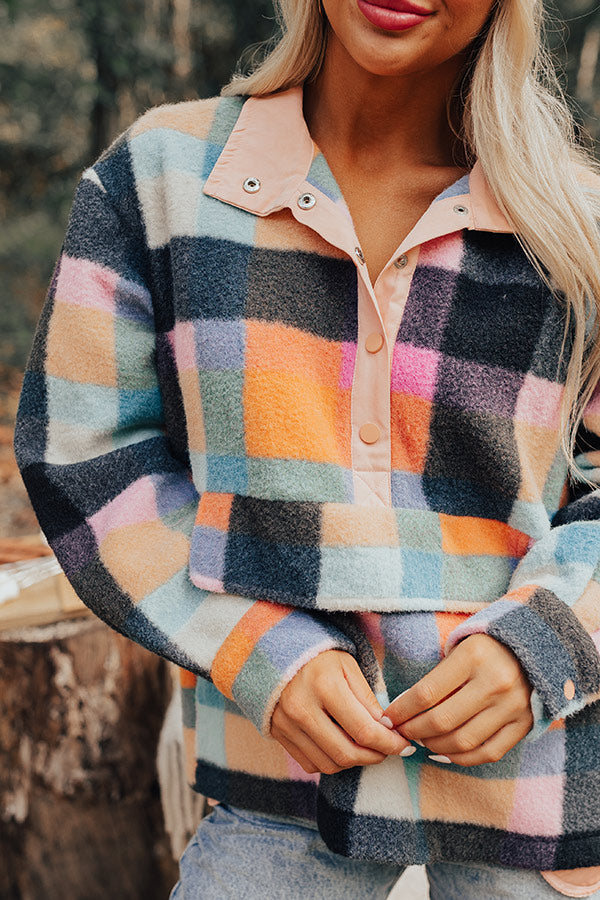 - Unlined soft material with an orange, pink, green, and blue hued plaid print