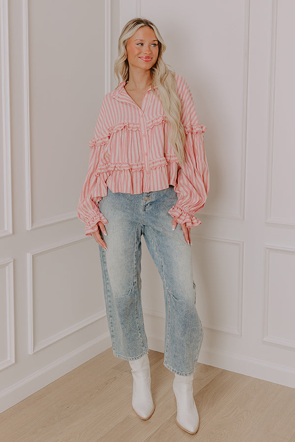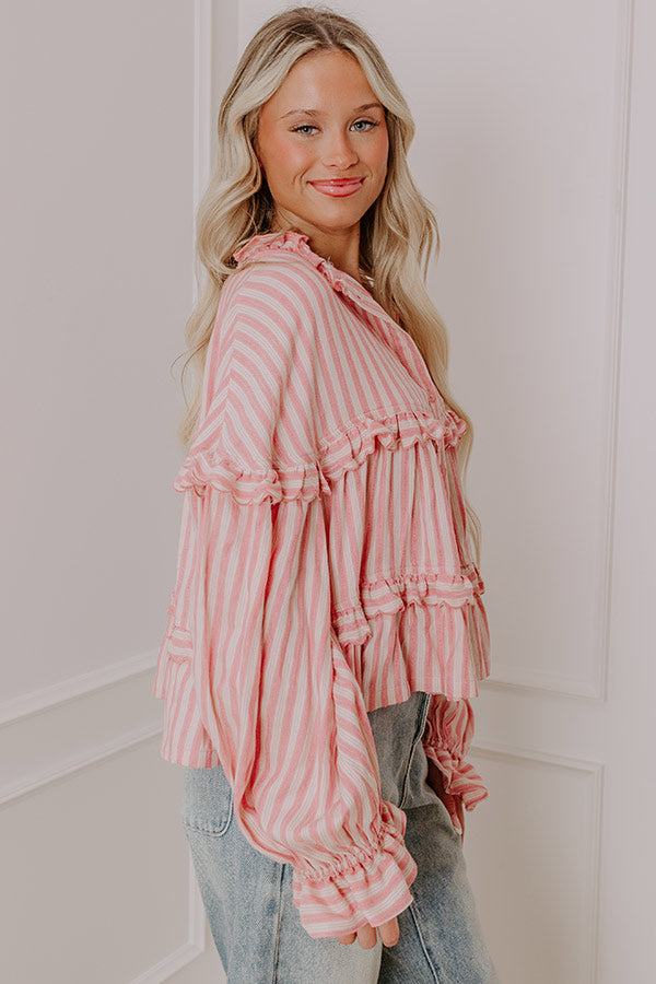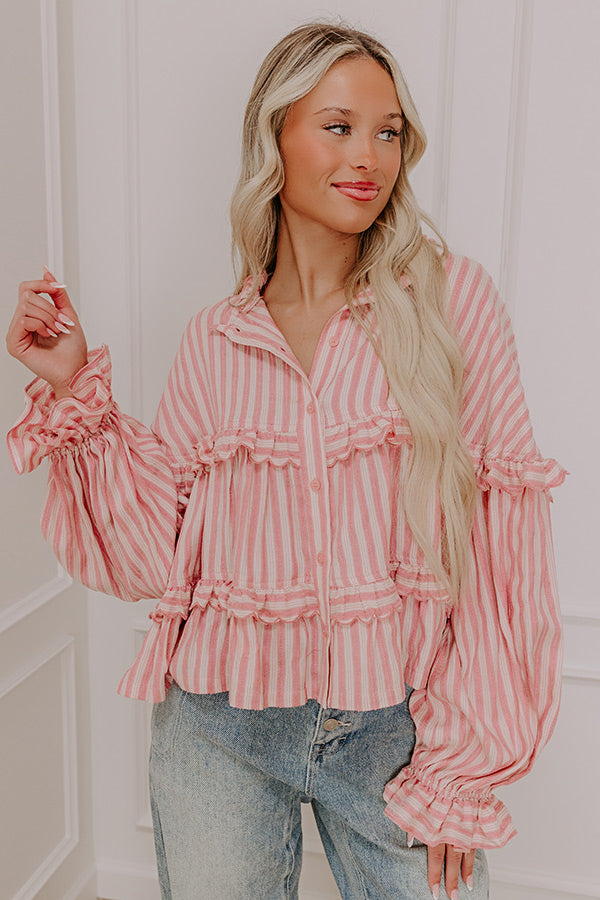 - Meet up for brunch in this darling top! With a timeless stripe design and ruffled detailing, this cutie brings all the charm to your outfit.