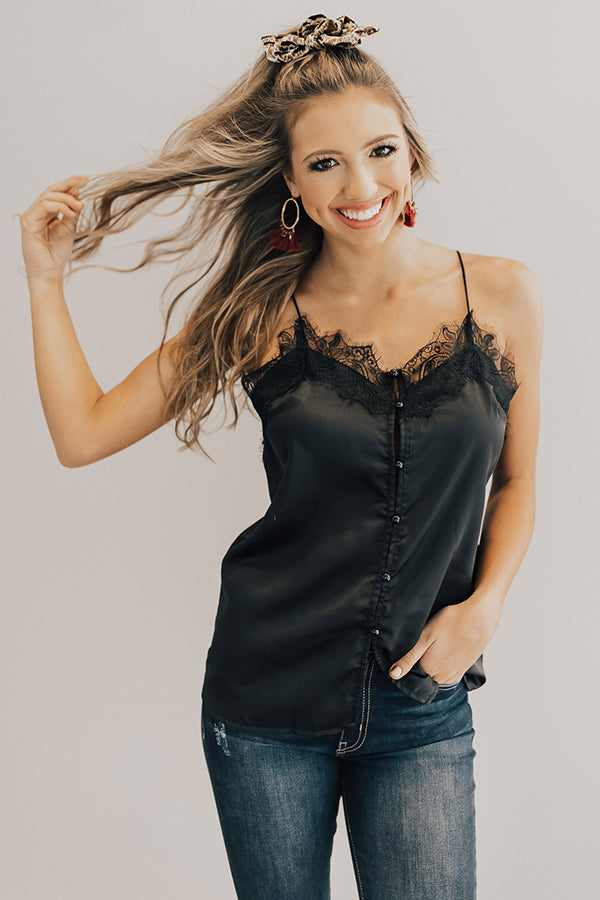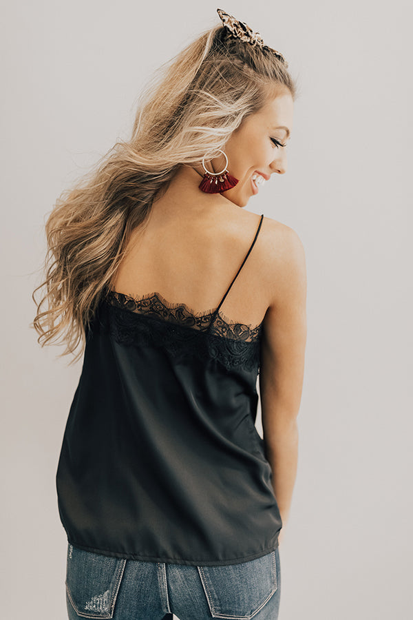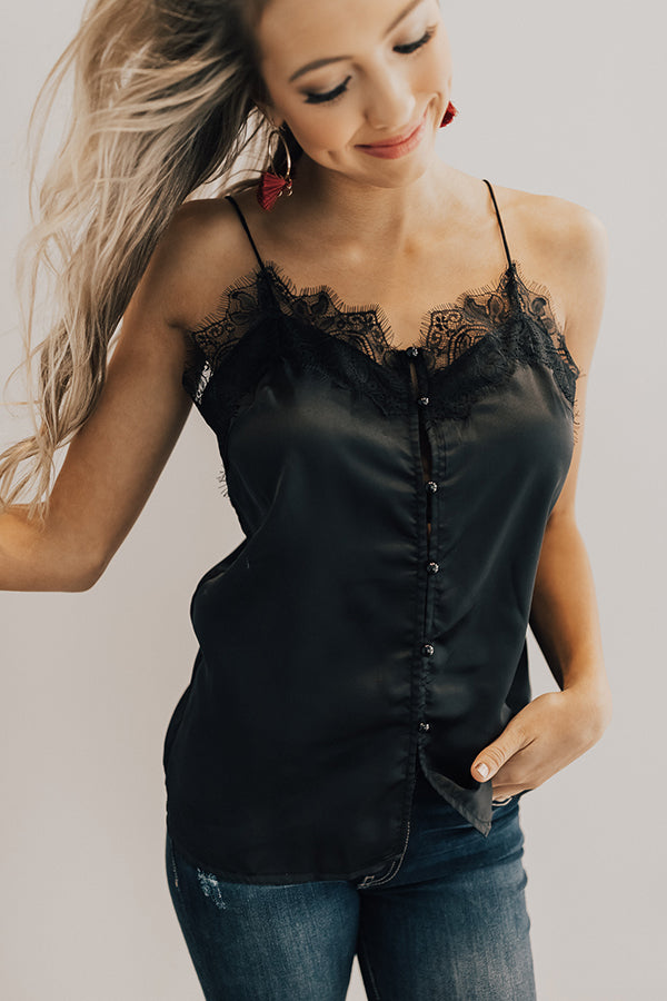 Sipping Champagne Satin Tank in Black