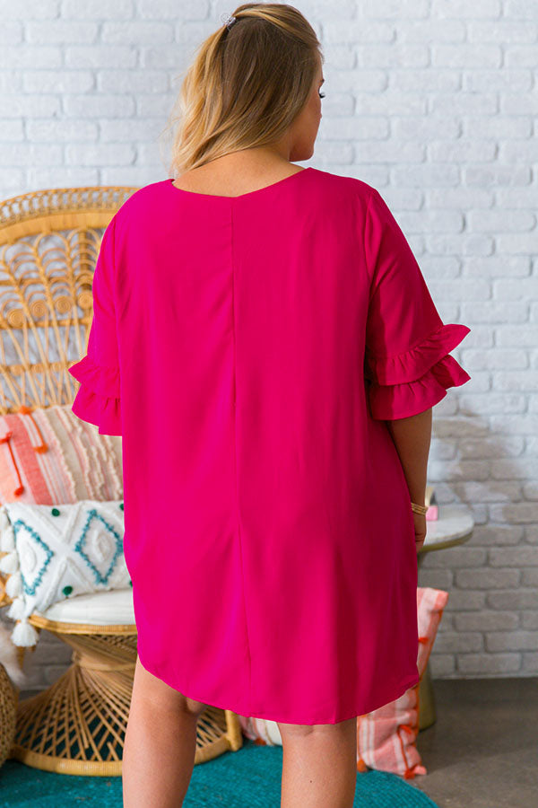 Sip sip, hooray! The "Sipping In Santa Rosa Shift Dress" is ready to be wined & dined! This fabulous fuchsia dress has a strappy v-cut neckline, short ruffled sleeves & a relaxed poly bodice that is easy to slip on, & go. Dress your look up with heels, or down with a fun pair of leopard wedges... Your style options are endless with this chic shift dress!