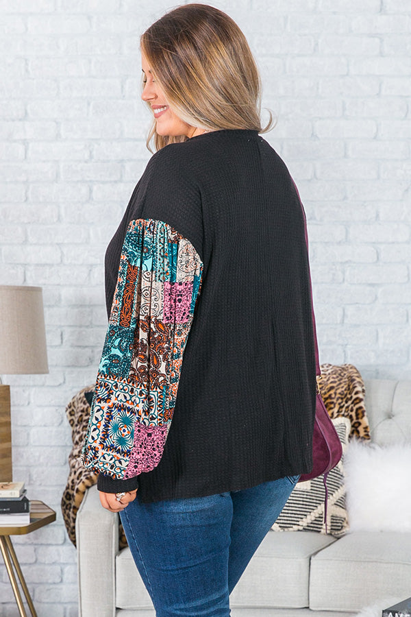 Plus Size - Whether you are sipping wine in Sonoma, or shopping around town, this boho inspired waffle knit top is sure to become one of your favorite new "casual cute" go-to's! The "Sipping In Sonoma Waffle Knit Shift Top" has billowy boho printed sleeves & a relaxed waffle knit bodice that can easily be dressed up or down. Complete your look with a felt hat & booties, for a chic boho inspired look that you will wear time & time again.