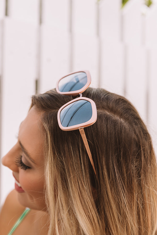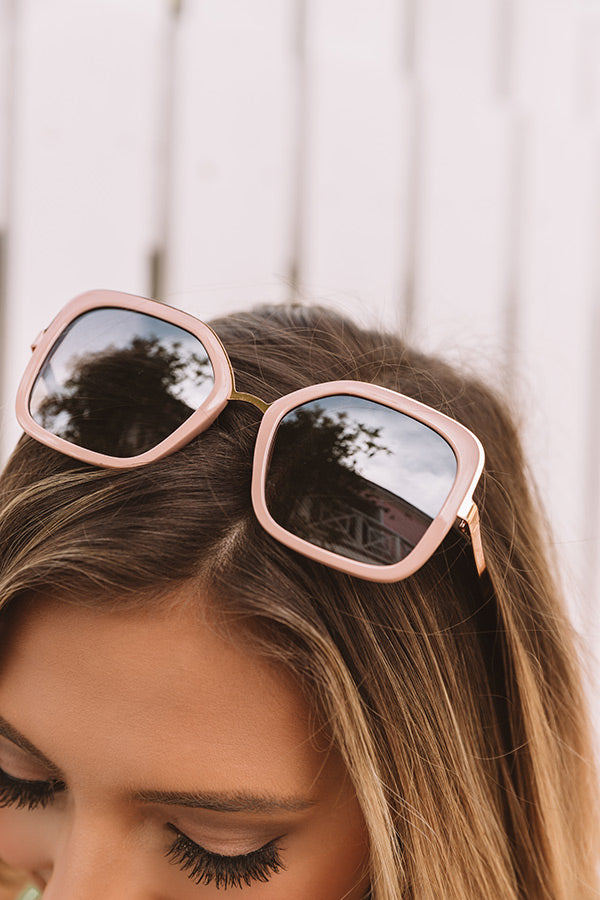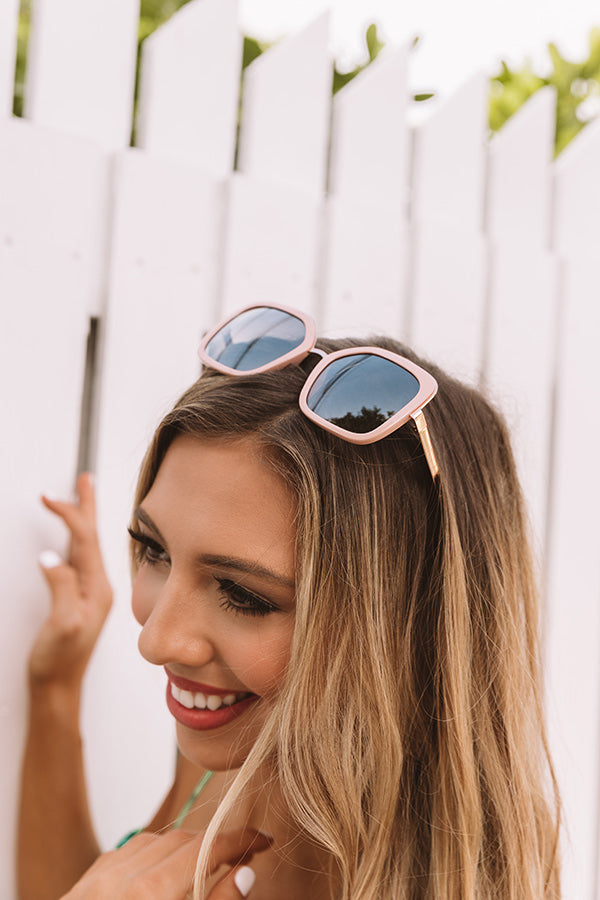 There is no better way to stay stylish while "sipping a cocktail in the shade" than by accessorizing with these adorable sunnies featuring square blush colored frames, gold detailing on the nose bridge and ear pieces, and dark tinted lenses!