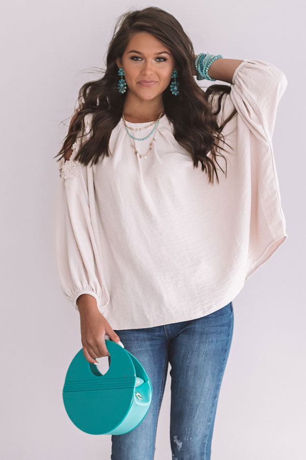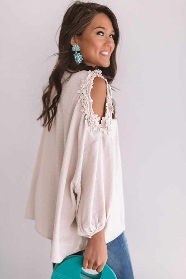 There is no time in life to be neutral unless you are putting together a stunning outfit! This shift top has shoulder cutouts with oversized floral trim and a keyhole accent in the back with a button closure! Pair this top with some dark denim jeans and colorful earrings for a laid back and sweet summer outfit! Measurements