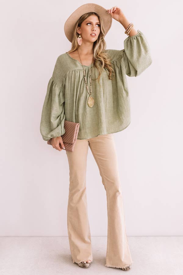 Skippin' Down Sixteenth Avenue Babydoll Top In Pear