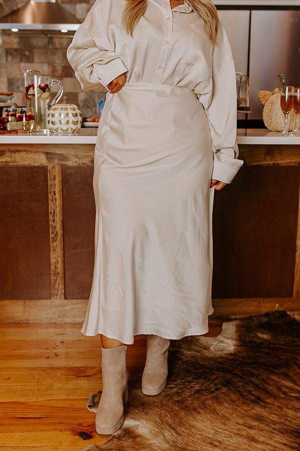 Sleek Sophistication Satin Skirt in Cream Curves