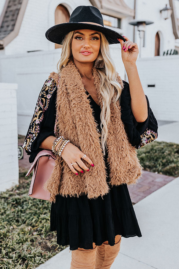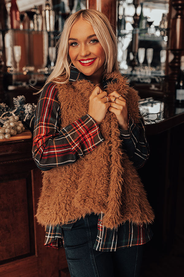 Slip into coziness with this adorable brown vest featuring ultra soft fuzzy material, wide sleeveless shoulders, and a relaxed open front silhouette that falls into a straight hemline! Measurements