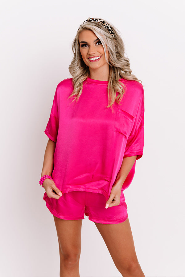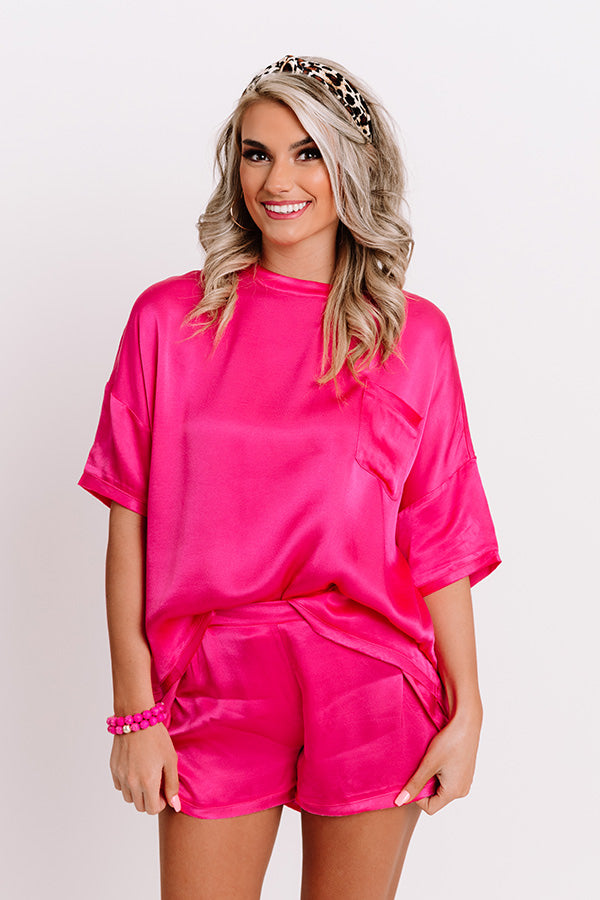 Slip Into Sweetness Satin Shift Top in Hot Pink