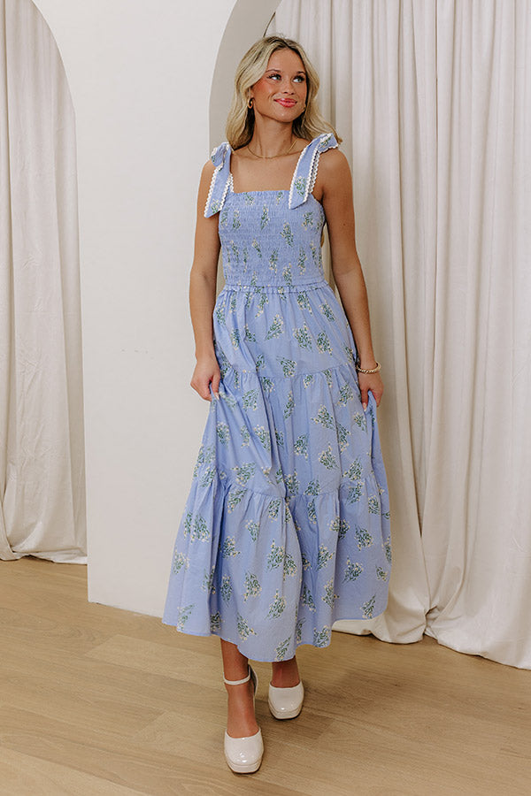 - This darling maxi is giving small town charm! With its wildflower inspired design and sweet tied straps, this cutie is a floral fantasy com true.