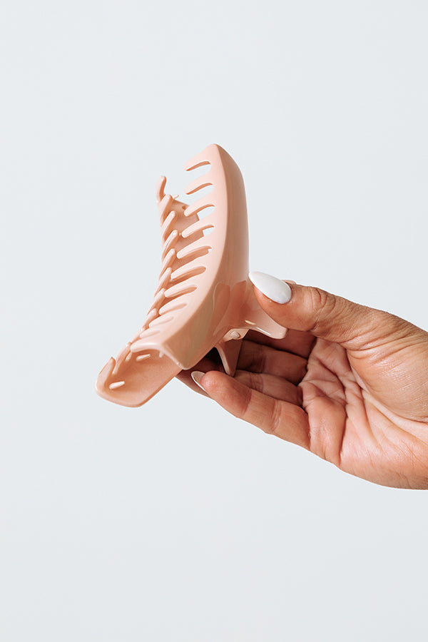 Upgrade your hair game with our trendy 'Smelling Roses Hair Claw Clip' featuring a curved silhouette and a smooth latte color!