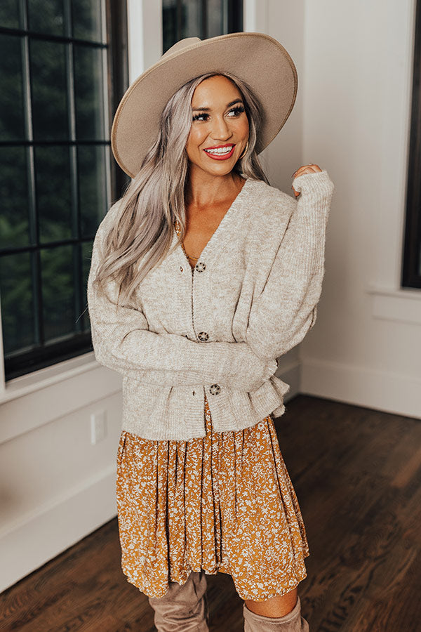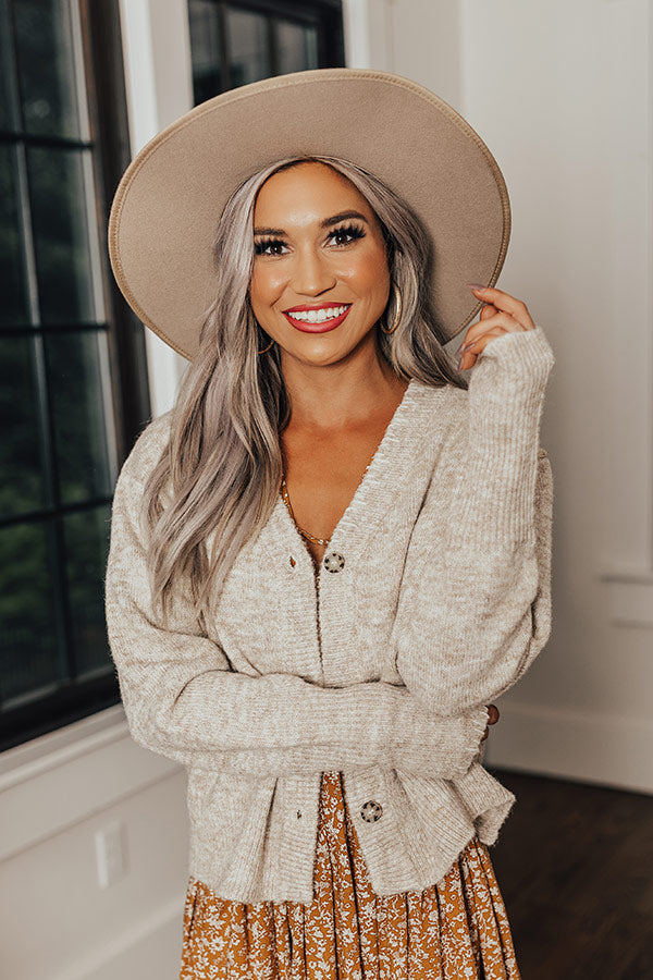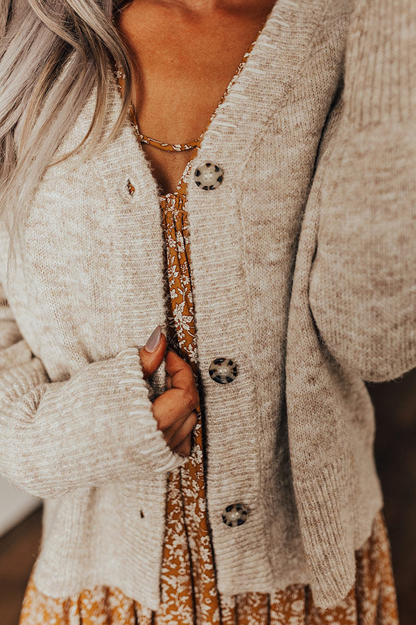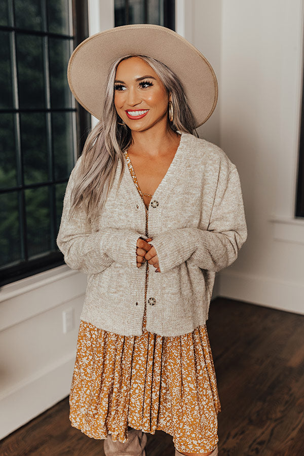 Whether you are looking for a piece to wear layered or solo, our light birch hued 'Smile And Calm Cardigan' is perfect for any o occasion! It features soft knit material, a button down front with a v-cut neckline, long loose sleeves, ribbed trim detailing, and a relaxed silhouette that fall into a straight hemline! Measurements