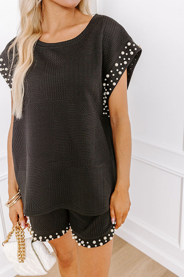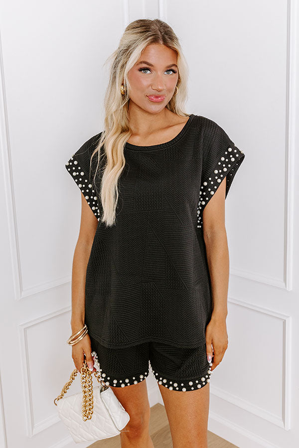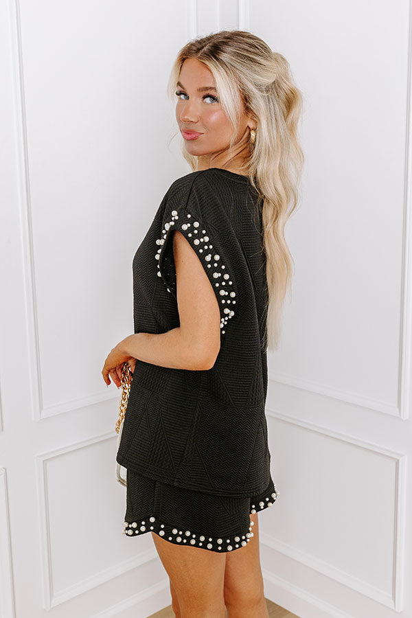 Smiles and Sangrias Pearl Embellished Top in Black Image - 1