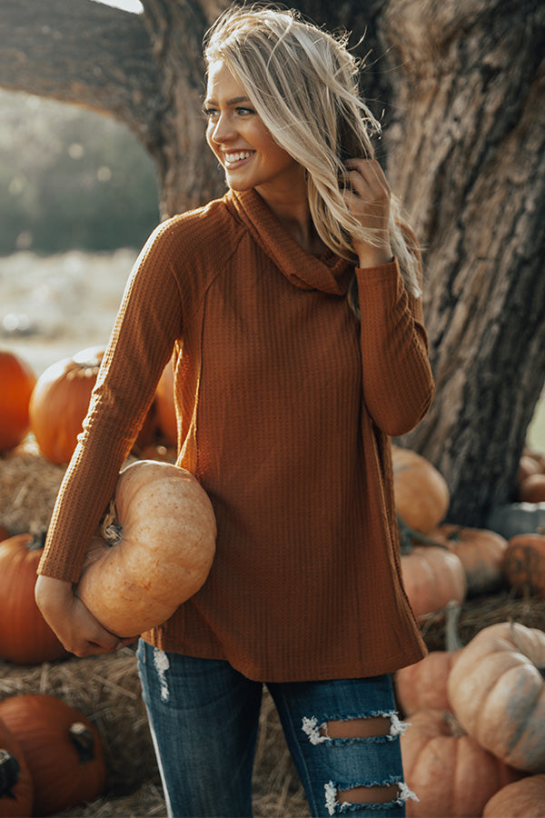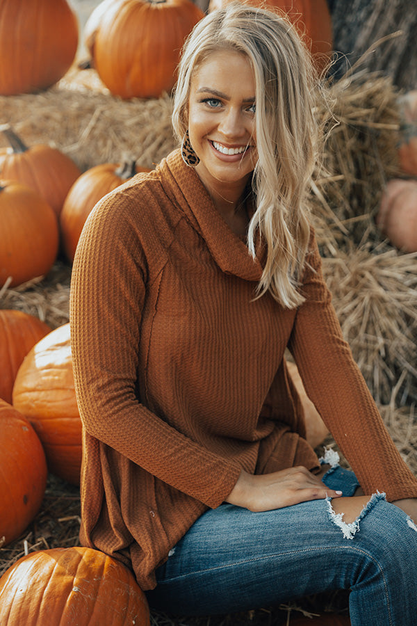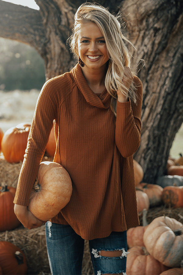 Up the ante, & show your casual closet essentials S'MORE love, with timeless textures & fun necklines that are just as stylish layered as when they fly solo. The "S'more Love Waffle Knit Top" has a cowled neckline, long fitted sleeves & a relaxed waffle knit bodice. The waffled texture & cowled neckline add the perfect touch of style, & its solid hue and classic shift silhouette give it the simplicity you look for when layering.